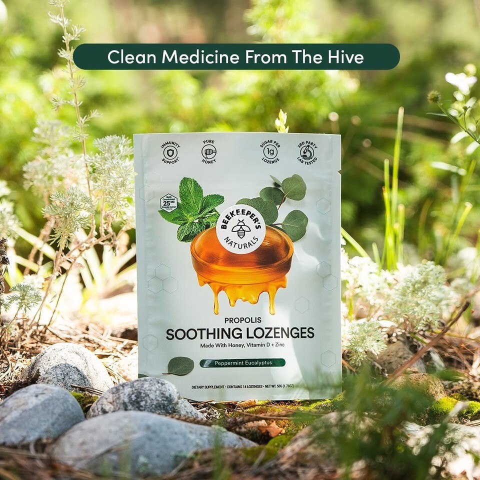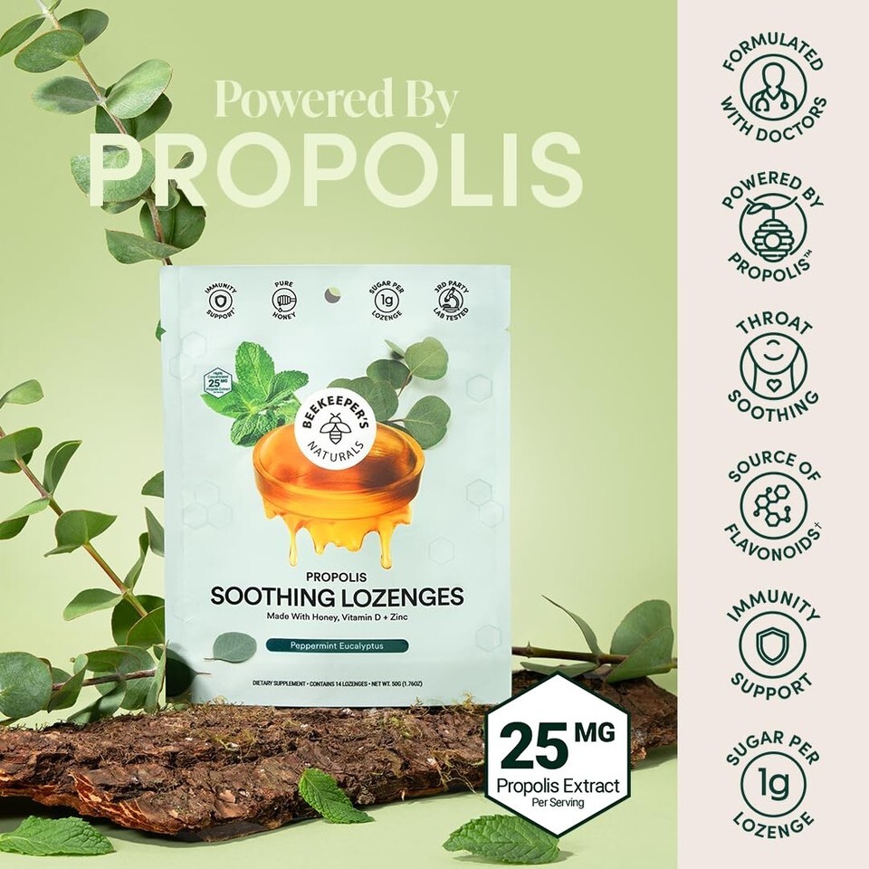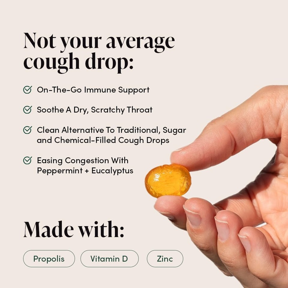 NATURAL COUGH DROPS: Not your average cough drops, these propolis lozenges are made with powerful ingredients: Raw honey, propolis, eucalyptus, peppermint, Vitamin D and zinc, that promote immune health while soothing dry, scratchy throats. (And they taste great, too.)
