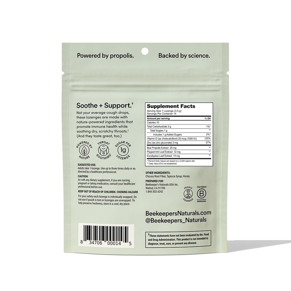 BestBy01/26 Beekeeper's Naturals Soothing Mint Eucalyptus Cough Drops 14 Ct