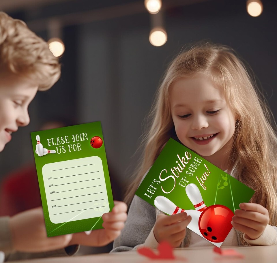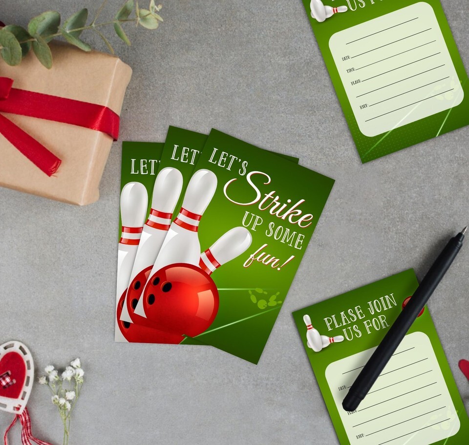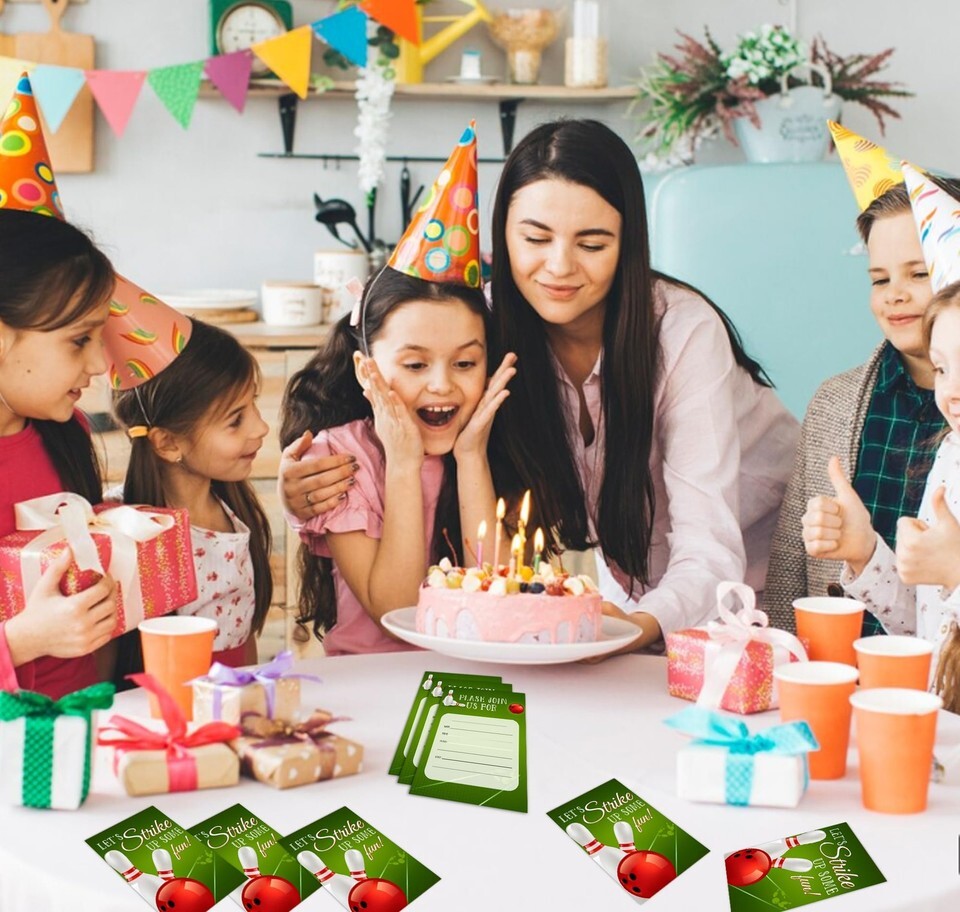Bowling Birthday Invitations for Boys Girls, 30 Double ided Design Birthday Party Invitations with Envelopes
