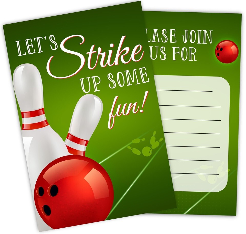 Feyerr Bowling Birthday Invitations for Boys Girls 30 Count Double Sided Cards