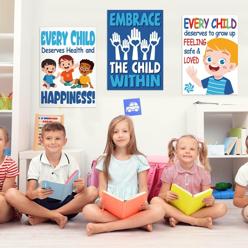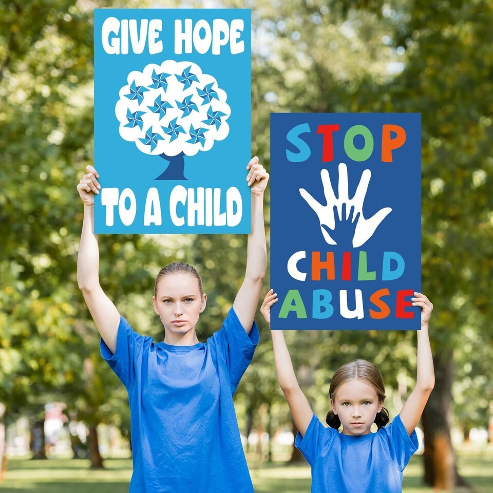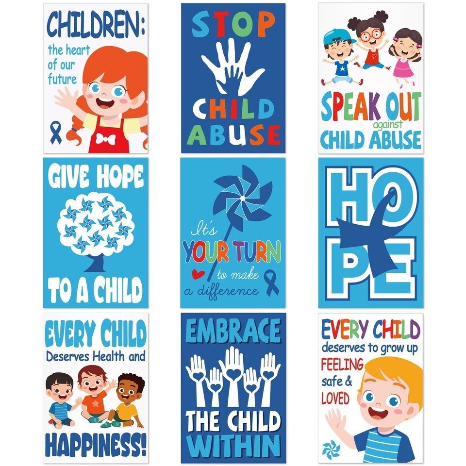 Feifeiya Child Abuse Prevention Poster Blue Pinwheel 9 Pcs Classroom Decor