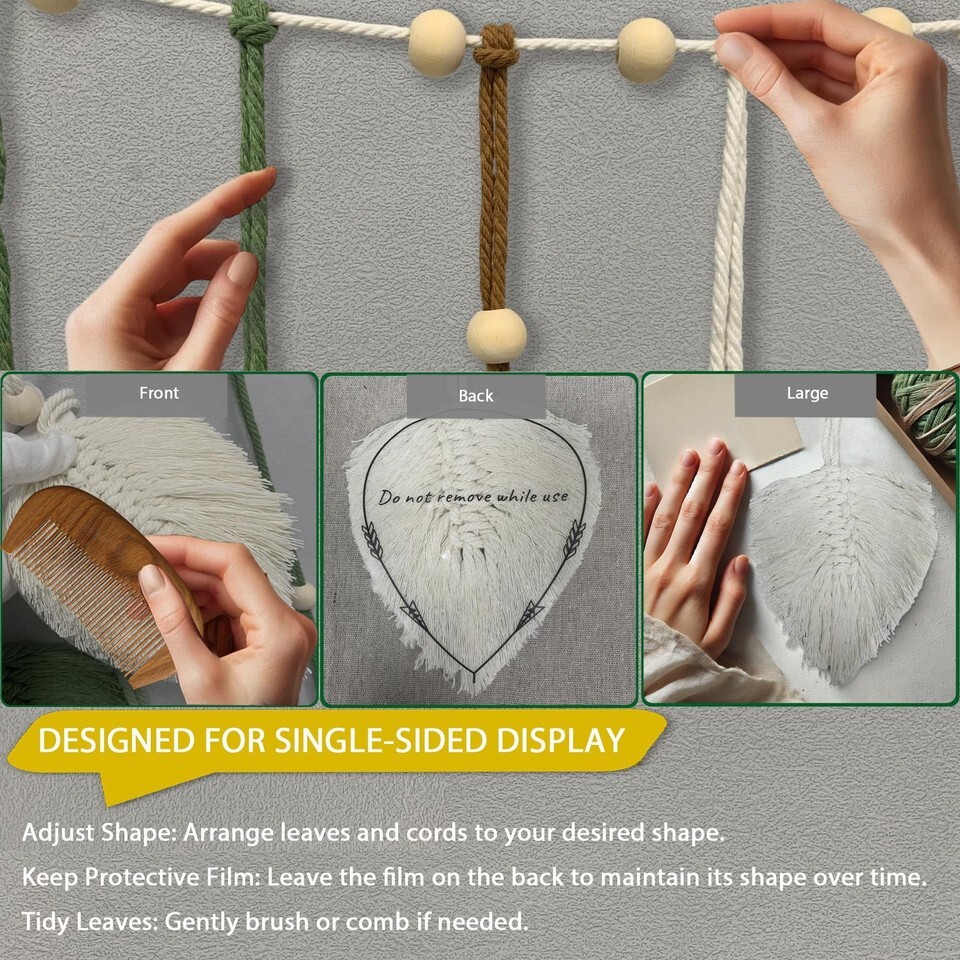 Easy Hanging: Remove the protective films to reveal perfectly shaped leaves, then effortlessly hang your new macrame wall art after delicately arranging the leaves