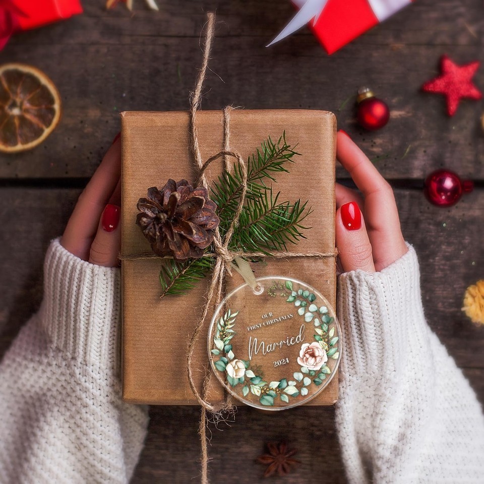 First Christmas Married Ornament 2024, 1st Christmas as Mr and Mrs Wedding Gifts, Newlywed Gifts for Couples, Married Couple Gifts, Newly Married Couples, 1st Year Married Christmas