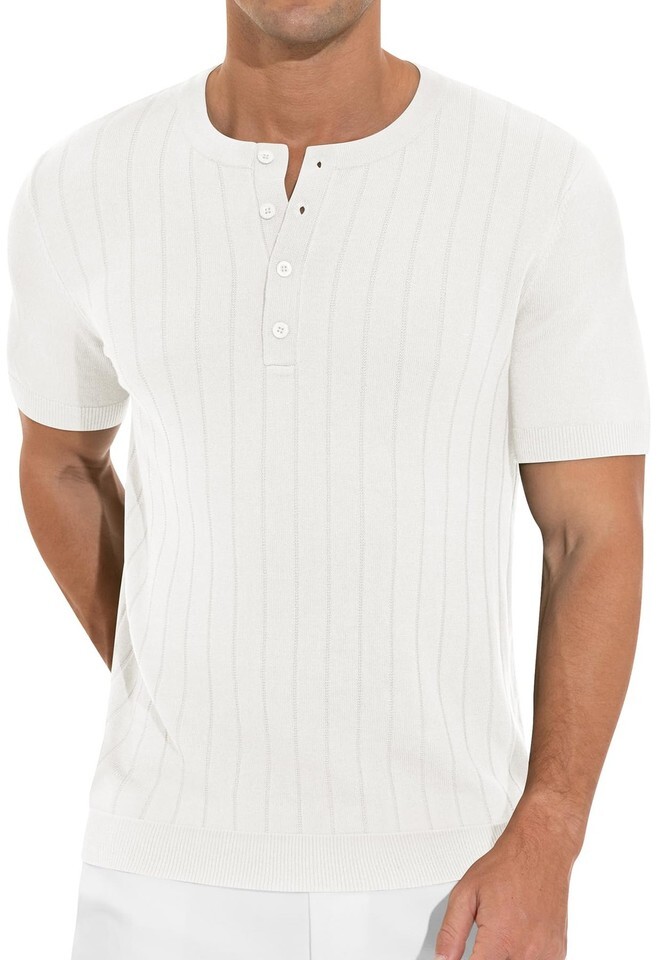 NITAGUT Mens Henley Shirts Knitting Solid Casual Slim Fit Pullovered Short Sleeve T-Shirt