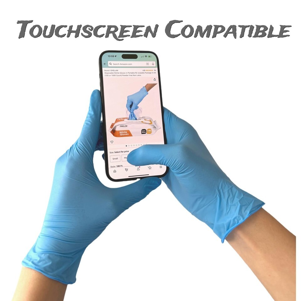 Powder-Free, Latex-Free, and smartphone operatable: OMELAW nitrile gloves provide exceptional comfort for various tasks such as food handling, household chores, hair and beauty care, industrial production, tattooing, and cleaning. Our gloves are the choices of countless families, resturants, shops, offices, nursering homes and etc.