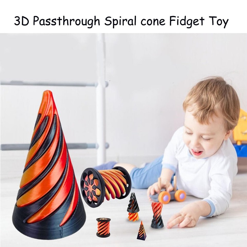 Spiral fidget toy:This screw nut spiral fidget toy offers a variety of display options. The pyramid passthrough sculpture can be displayed as two separate parts or displayed together, the 3d printed impossible vortex passthrough illusion art and fidget toys, providing a fascinating visual experience.