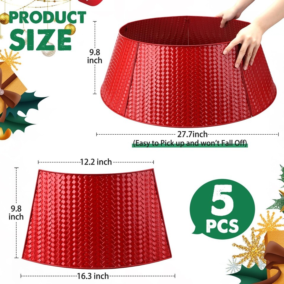 EIMMBD Metal Christmas Tree Collar Basket Skirt 28in Red