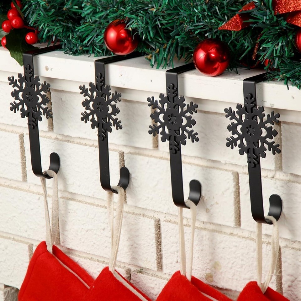 Exquisite Snowflake Design: the Christmas stocking holder for mantle fireplace adopts the classic Christmas snowflake shape, which is exquisite and lovely, full of winter atmosphere; The polished surface of the snowflake stocking hangers can reflect the warm lights and fire, sparkling, adding warmth and happiness