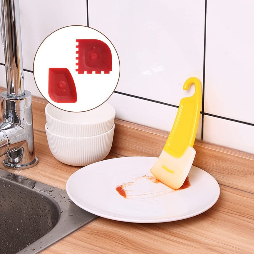 LAOJU 3PCS Cast Iron Pan Scraper Set Silicone Kitchen Cleaning Tools