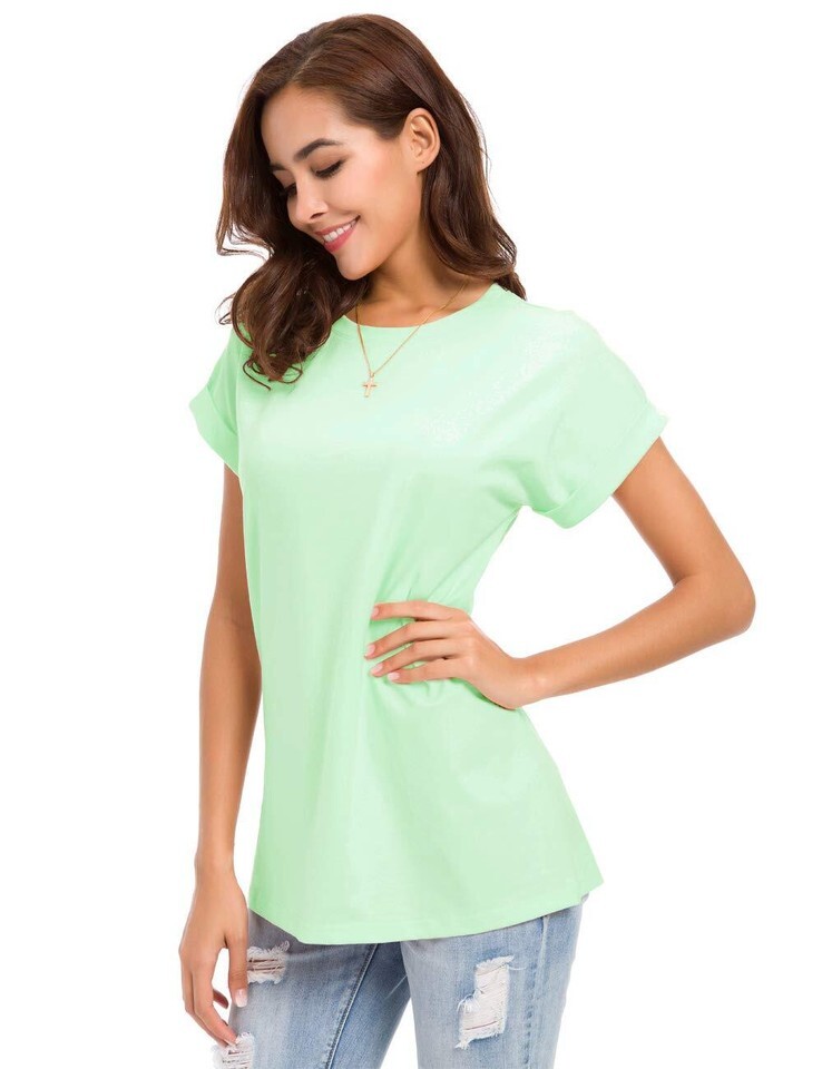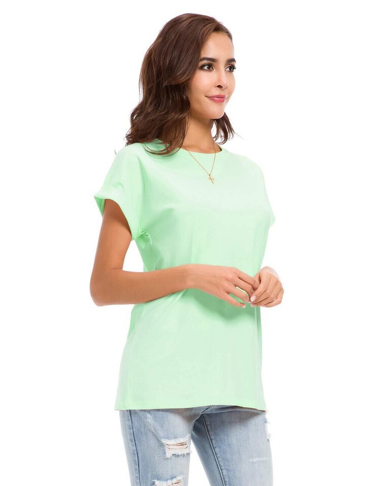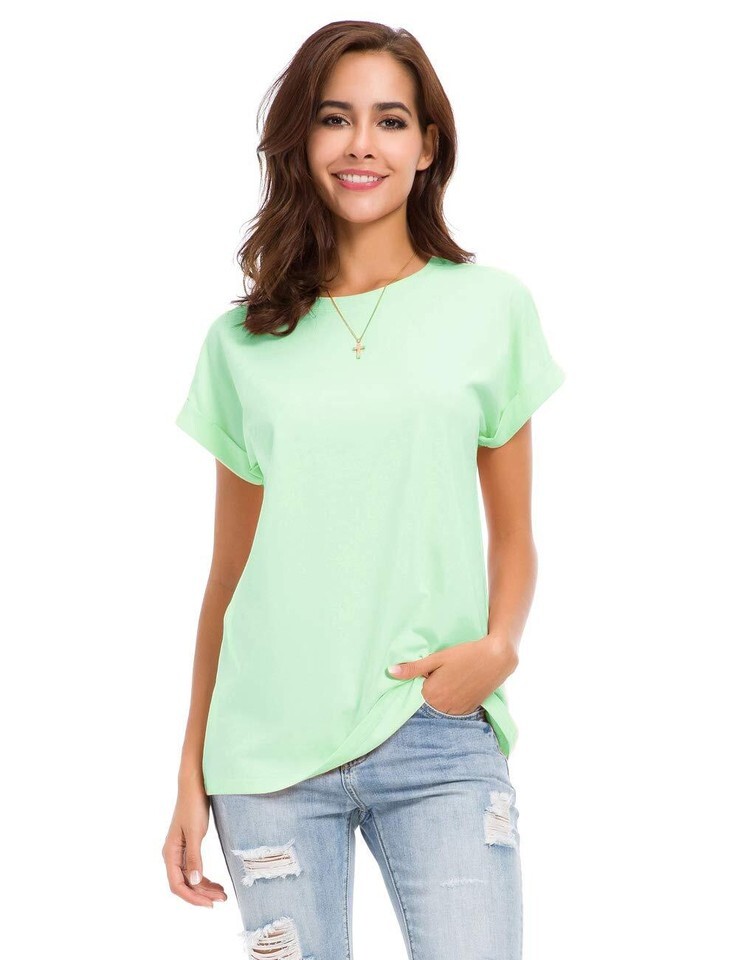 MSHING Women's Simple Crew Neck Plain Loose T-Shirt Light Green Size L Casual