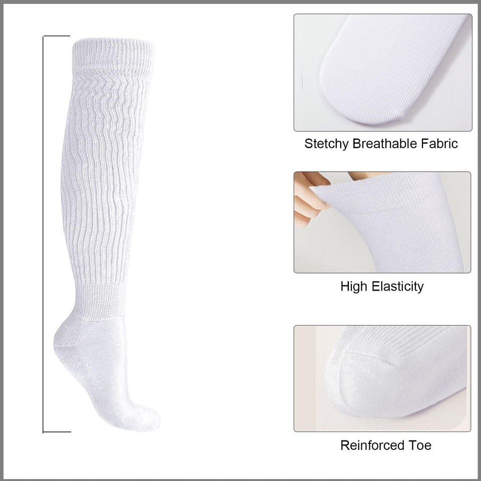 EASYLONGJEE Women Slouch Socks Knee High White 3 Pairs Size 6-11