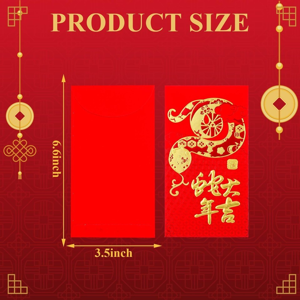 Proper Size: the size of each Snake Year red envelopes is about 6.6 x 3.5 inches; The appropriate size to hold most of the banknotes and has enough capacity for holding your presents