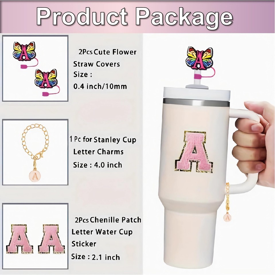 Stanley Cup Accessories Straw Cover Set IN CHENTHY 2pcs + Letter Charm Chains K