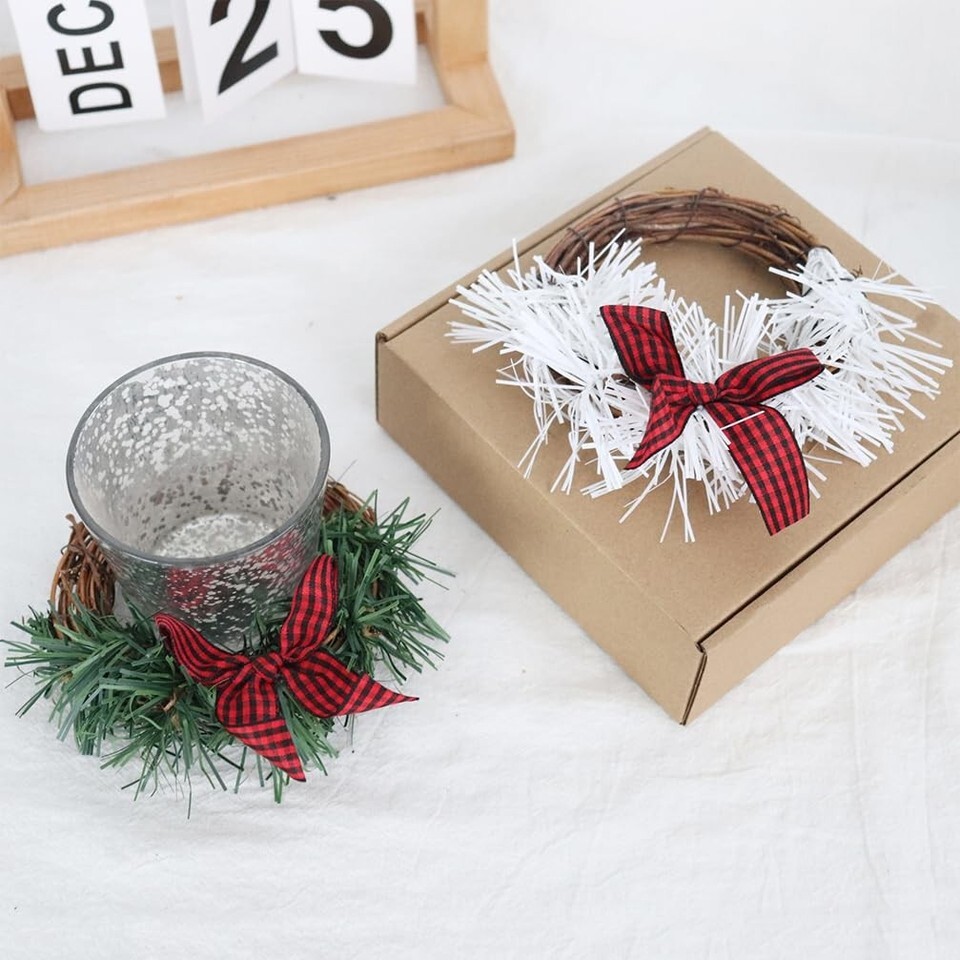Christmas Wreath Brown Candle Rings Bow Eucalyptus Garland Candle Holder