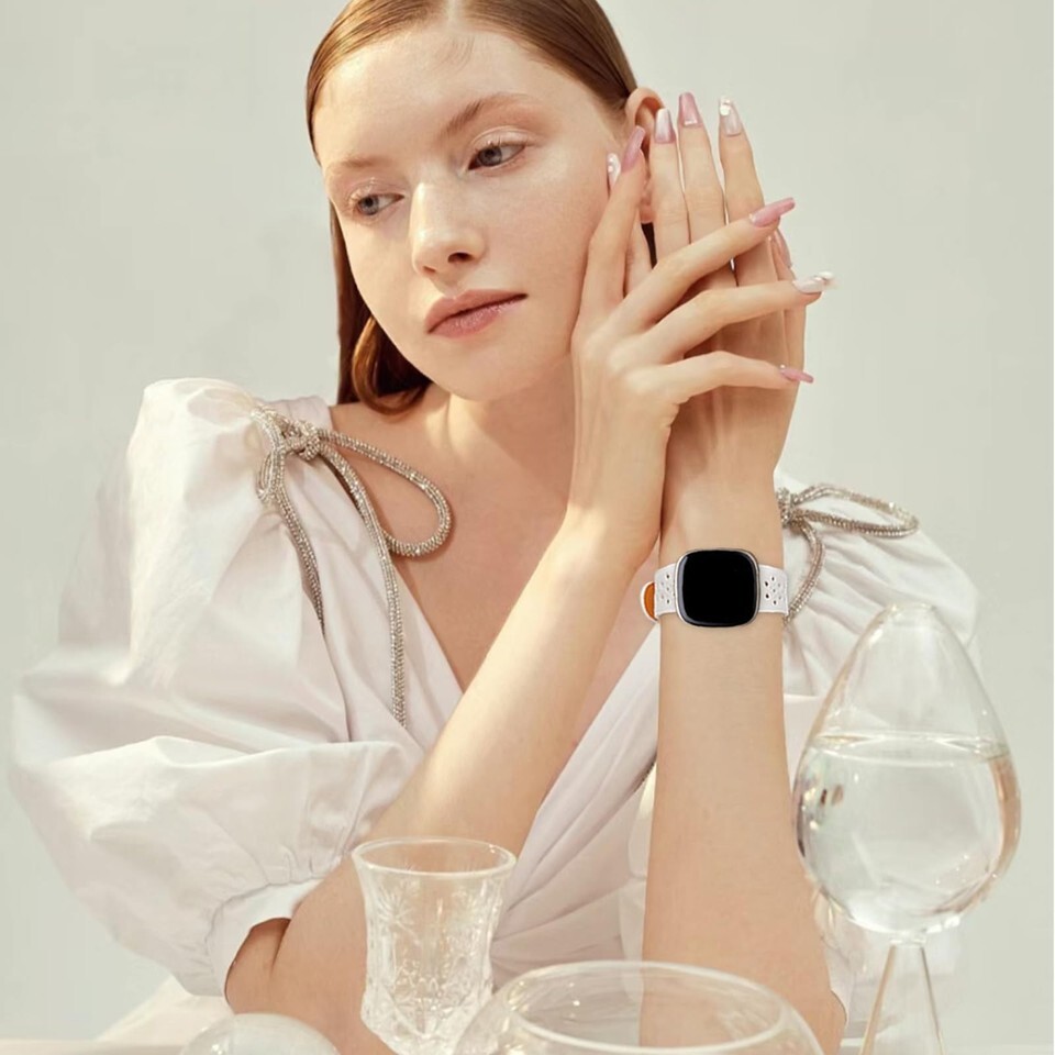 Yibcaiic Leather Bands Compatible Fitbit Versa 4 3 Sense Floral Hollow-out