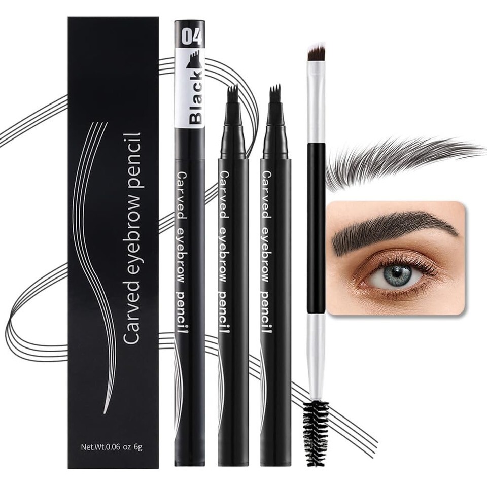 Magic Microblade Eyebrow Pen 4-Tip Precise Contouring Waterproof 2Pcs Black