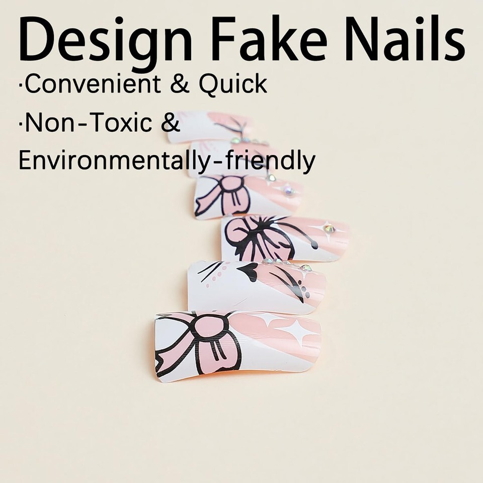RIICFDD Press On Nails Medium Pink Duck Bow and 50 similar items