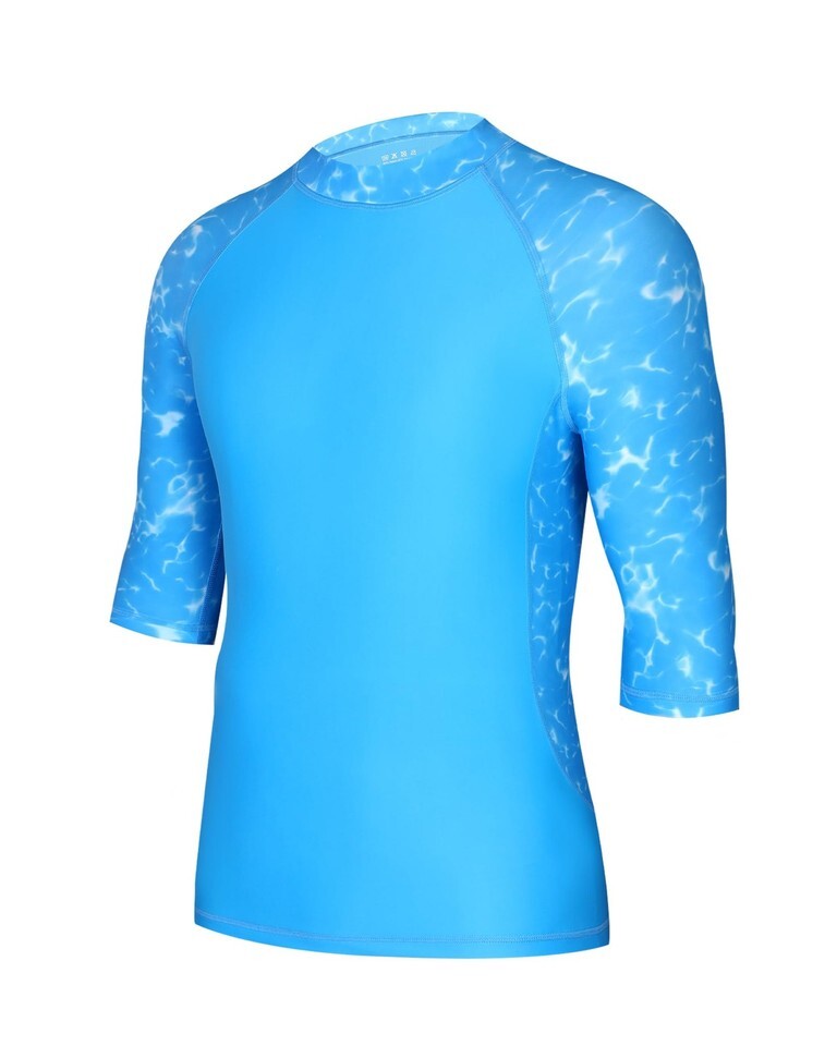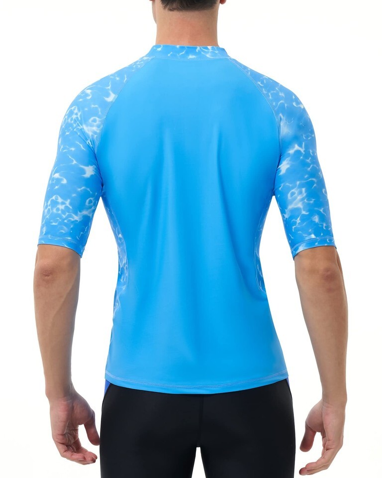 [Unique Sports Design]: The sleeves of the water shirts for men feature ocean print design, incorporating marine elements into the garment, giving you the feeling of being surrounded by the sea and sky. The sports-fit design uses elastic fabric to ensure the garment fits perfectly to your body, providing a comfortable and supportive wearing experience.