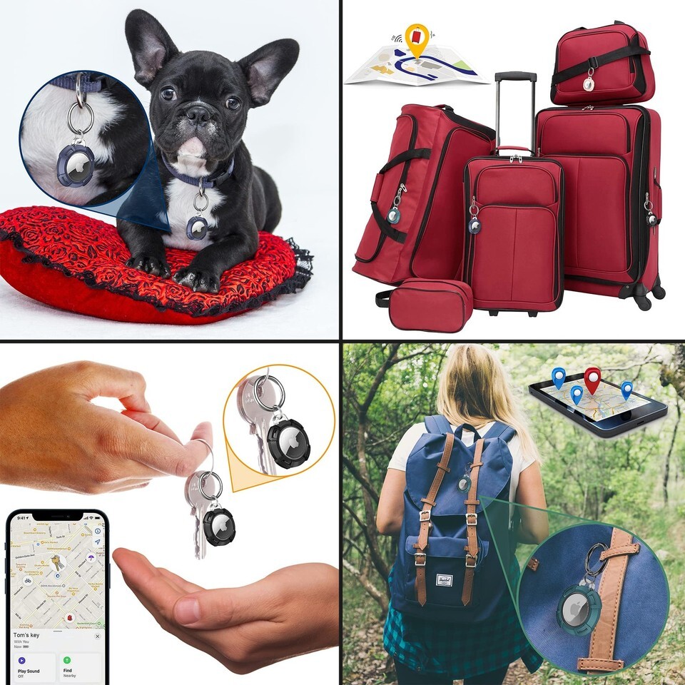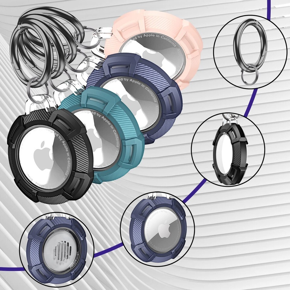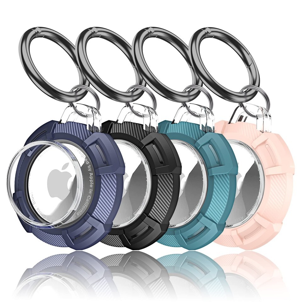 4 Pack Apple Tag Holder Case PC+TPU Scratch Resistant Black Blue Green Pink
