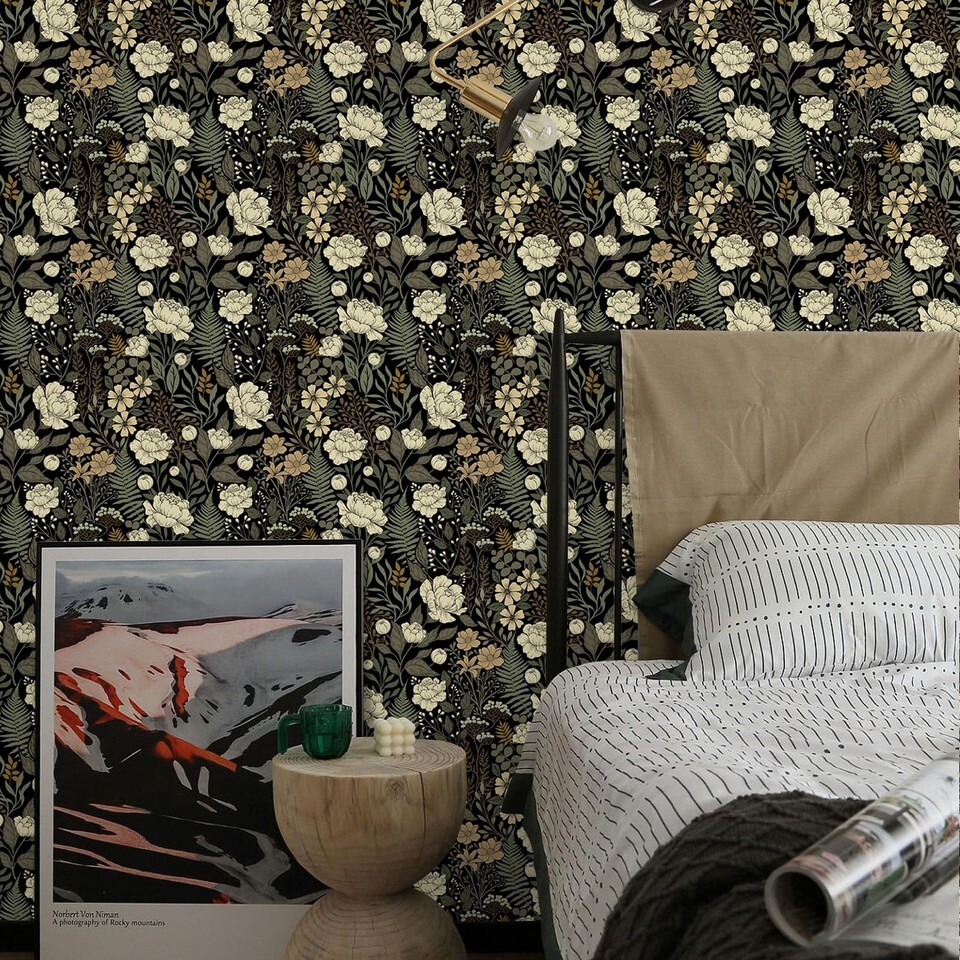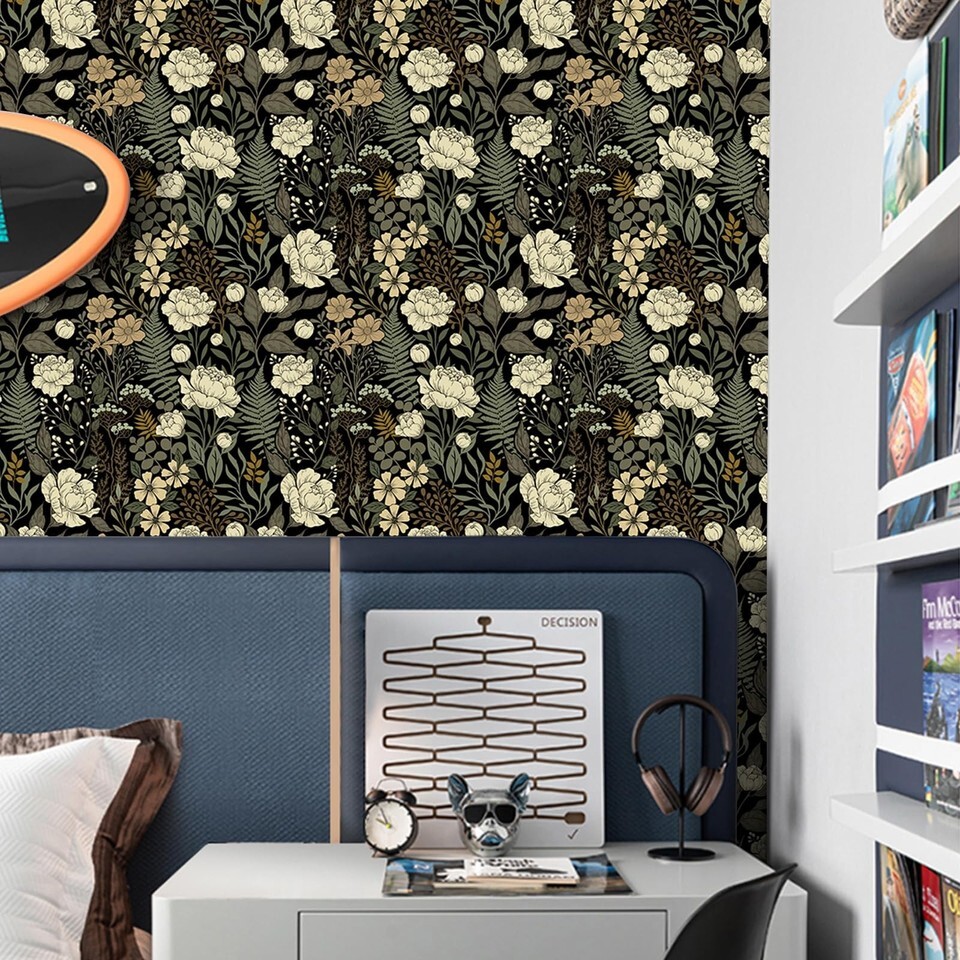 sage green wallpaper vintage peel and stick wallpaper boho wallpaper nursery boho wallpaper stick and peel kids room floral wallpaper mural floral wall art for bedroom renter friendly wall paper DIY waterproof thicken botanical leaves elements of flowers and leaves moody wallpaper harry potter wallpaper william morris wallpaper peel and stick wallpaper black sage green wallpaper