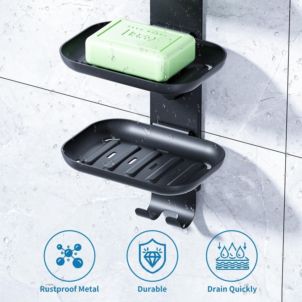 MAYZOLOP Soap Dish Holder Shower Wall Mount with 2 Hooks Bathroom