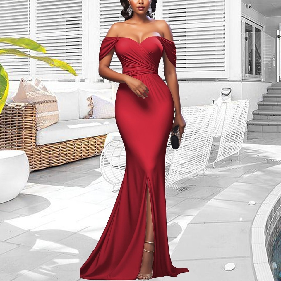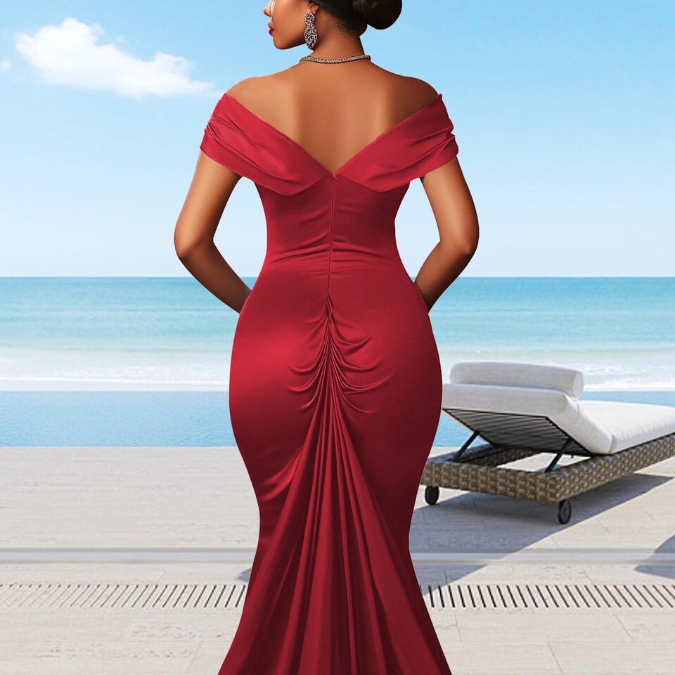 Red Elegant Off Shoulder Mermaid Maxi Dress and similar items