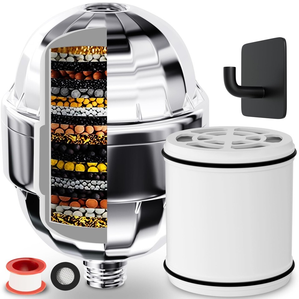 Clearly Filtered: Our hard water filter effectively eliminates chlorine, heavy metals, and harmful contaminants from city, hard, and well water, ensuring gentle . Perfect for women, children, and pets, with a sleek silver design and premium ABS material