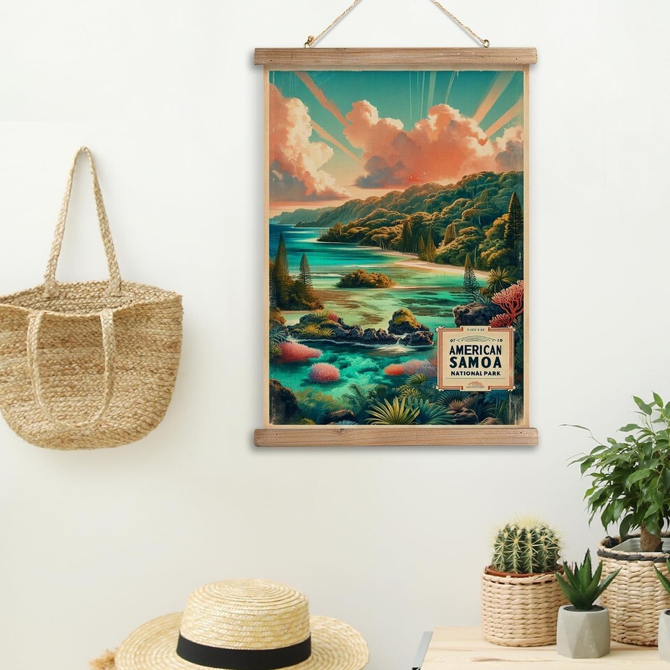 XIAOAIKA American Samoa National Park Travel Poster 16x23 Inches Wooden Frame