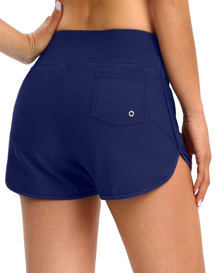 Blouty Women's Swim Board Shorts High Waisted Tummy Control Pockets Navy Size M