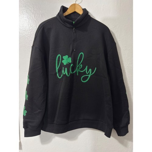 ALIREVERIE Womens St Patricks Clover Oversized Quarter Zipper Sweatshirt Size S
