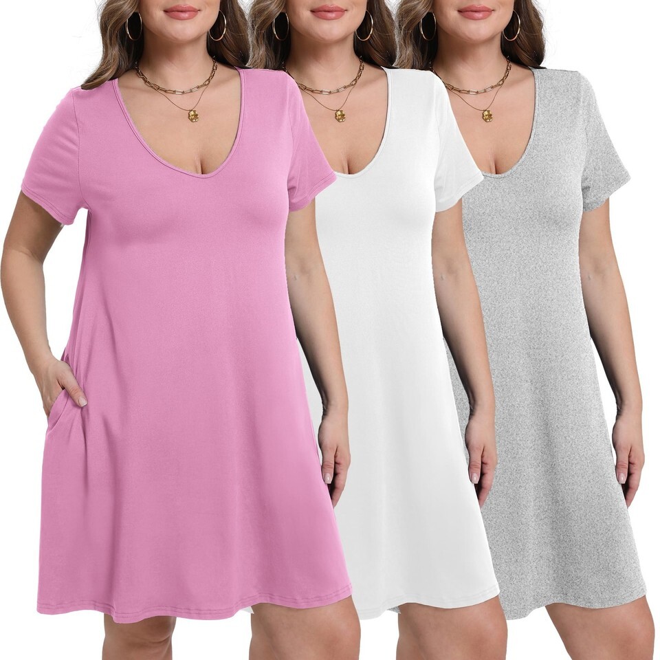 Volope Women's Nightgown Pajama Set 3 Pack Cozy Sleepwear Pockets Size S