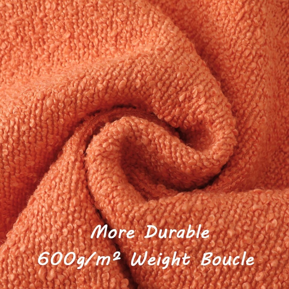 These elegant pillow covers are made of luxurious and durable 100% polyester boucle-textured soft fabric,featuring a thicker weave with a high weight of 600g/m.Gentle on the skin, they are machine washable and fade-resistant.