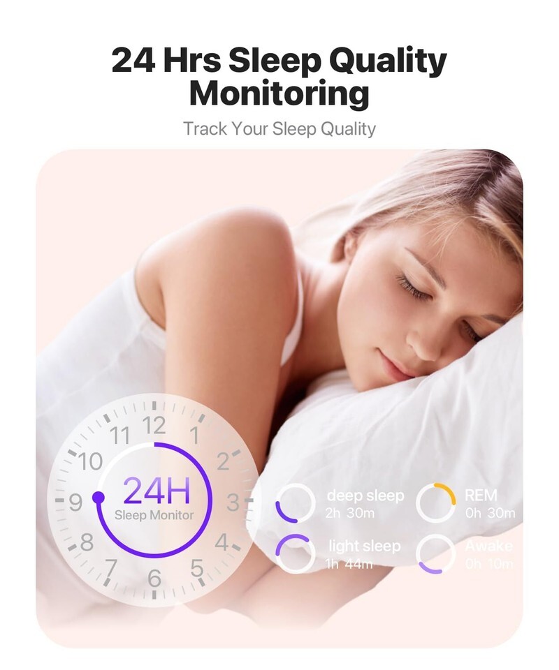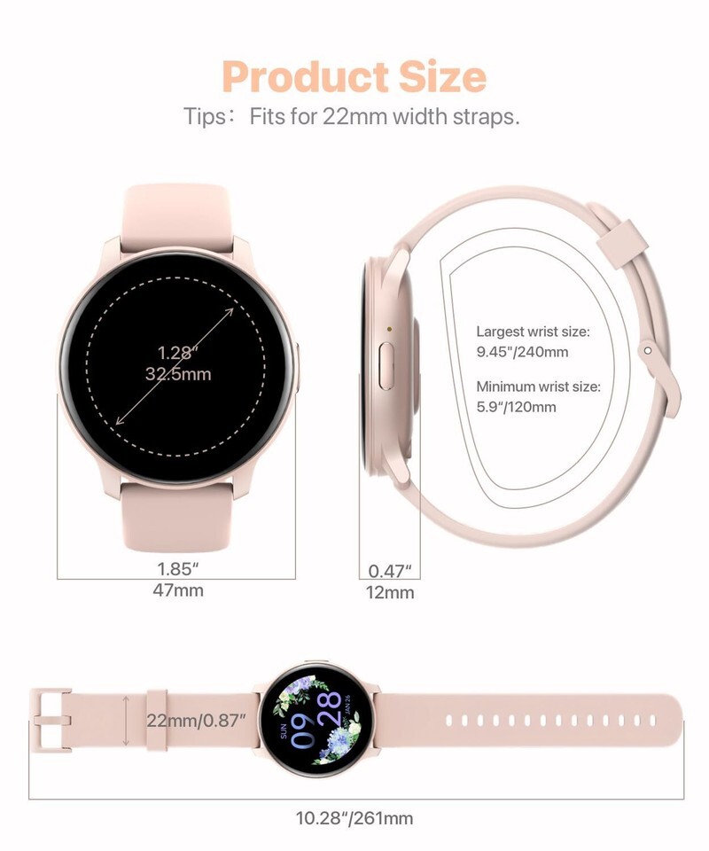 24 Hour Health Monitoring: This smart watch is compatible for most iphone and Android phones, and the digital chip inside is scientifically developed using the latest technology. The chip uses advanced sensors to monitor heart rate, blood oxygen and female cycle, and can also perform timely sleep quality tracking at night. All recorded data can be synced to your phone for analysis, providing valuable insights into your health and promoting lifestyle adjustments. (non-medical standard)