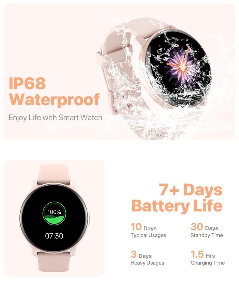 IP68 Waterproof: Sports watch is IP68 waterproof, and can be used normally even when washing hands, washing face or sweating. (Note: Not suitable for long-term immersion in water)