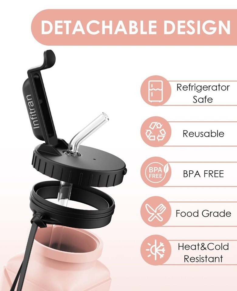 Leak-Proof and Easy to Clean: Equipped with leak-proof construction with a tight-fitting cover, this silicone reusable water bottle efficiently prevents spills and leaks. Additionally, the detachable bottle mouth and wide neck design make it easy to clean, ensuring a healthy drinking experience.