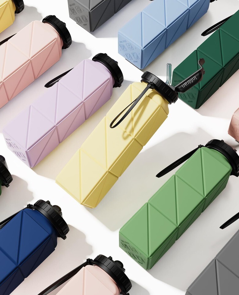 Space Magician - Small Folded Size, Large Unfold Capacity: This 2 pack collapsible water bottle is designed to save space by folding or rolling up when not in use, making it ideal for travel, hiking, office, home, gym, sports and so on. Its folded size is 2.9in(Height)*2.6in(Width) and capacity is 610ML.