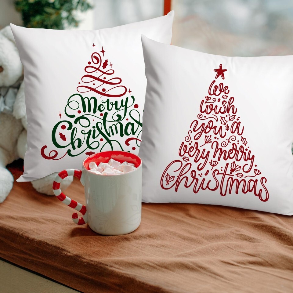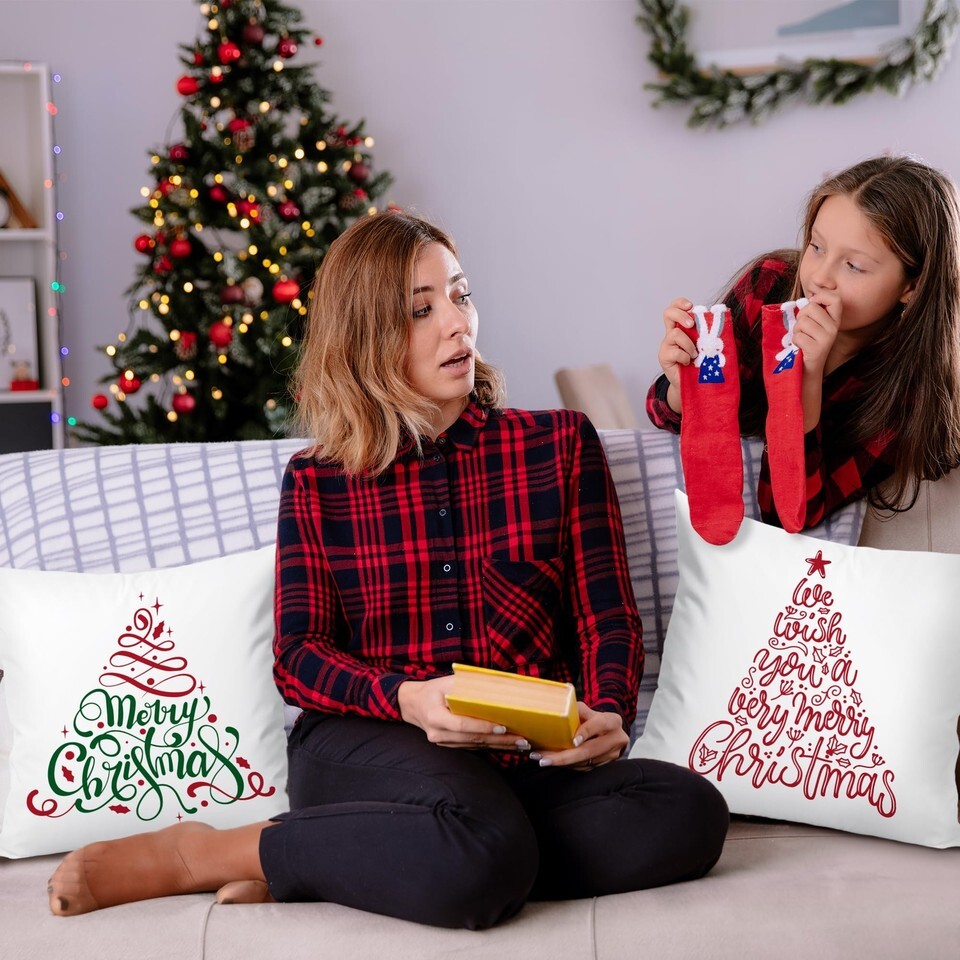 Jvpke 2-Pack 18x18 Red Green Christmas Tree Pillow Covers Xmas Decor