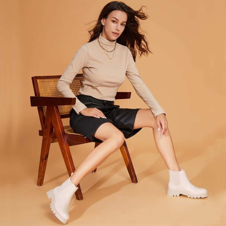 firelli Women Ankle Booties Chelsea Combat Slip On Winter Boots 7W Ivory