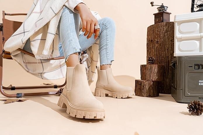 Platform boots chelsea ankle have non-slip rubber sole and soft insole for most comfort