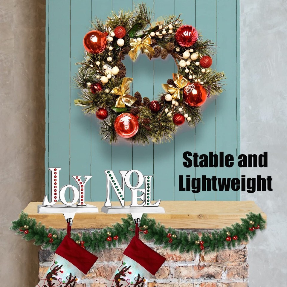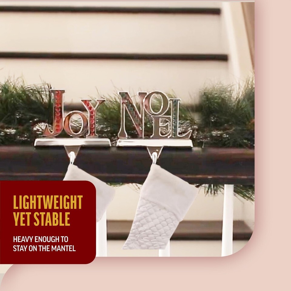 LIGHTWEIGHT STABLE: Heavy enough to stay on the mantle even when Its loaded with Santa's gifts. These Joy and Noel stocking holders are also lightweight so that they wont hurt pets or kids