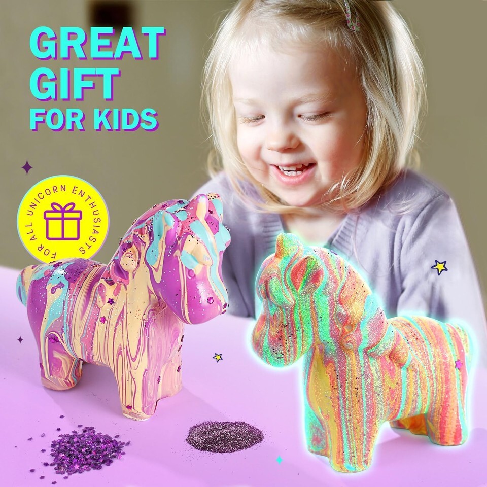 EDUCATIONAL KIDS CRAFTS: It is a great arts and crafts activity for kids, keep them busy for hours; You can watch your kids experience the fun of unicorns pouring from the moment they open the box, great way to get your kids out from behind the screens. BOTH entertaining and educational.