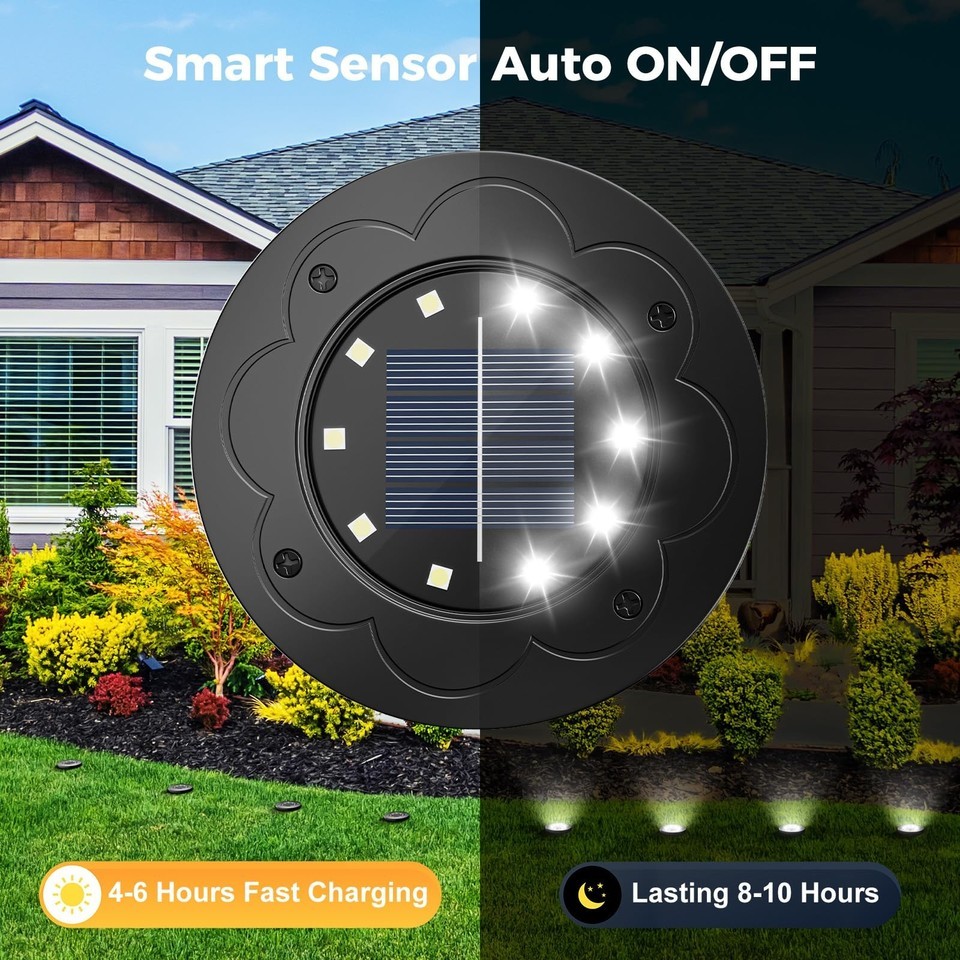 Waterproof and Durable: IP65 waterproof grade. Solar ground lights are made of high-quality, durable materials, waterproof and dustproof, durable and reliable, adapt to all kinds of harsh outdoor environments, ensure a long time and stable work. In order to prevent rust, please do not place it in a location that is easily flooded.