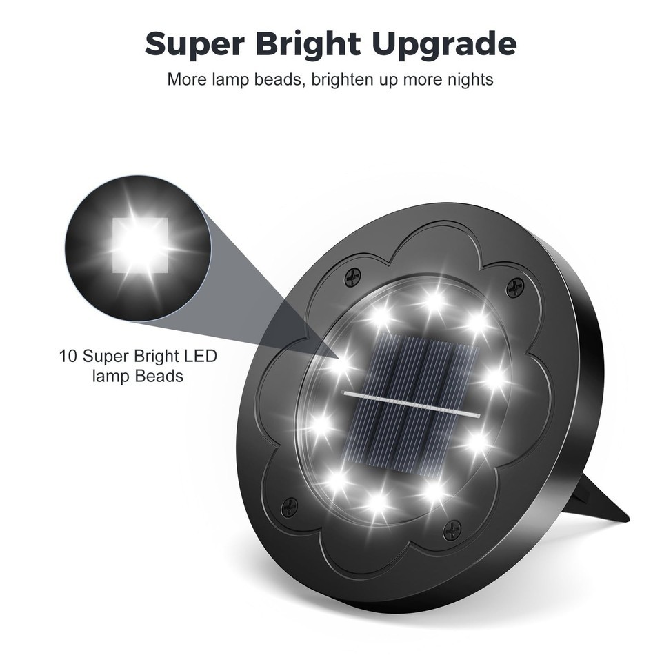 Energy Efficient and Brighter: Each solar garden lights has 10 LEDs, adopt of the advanced, LED energy-saving, Ni-MH 600 solar lamp. 8-10 hours runtime with 8 hours of sunshine, save energy and be eco-friendly, with high solar energy conversion rate, saving electricity costs, providing you with a bright atmosphere and environment.