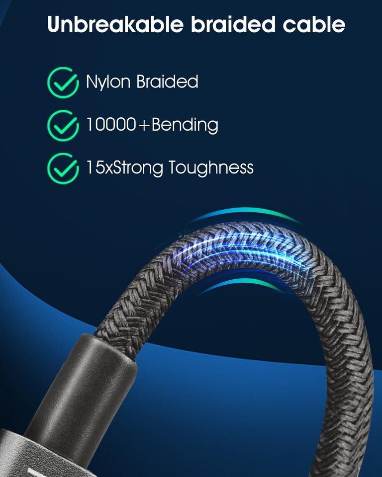 [Upgraded 15X Durable] The C cable is made of revolutionary fishing net braided wire, and have undergone 10,000+ bending tests, resulting in a longer lifespan compared to ordinary TPE C to C cables.