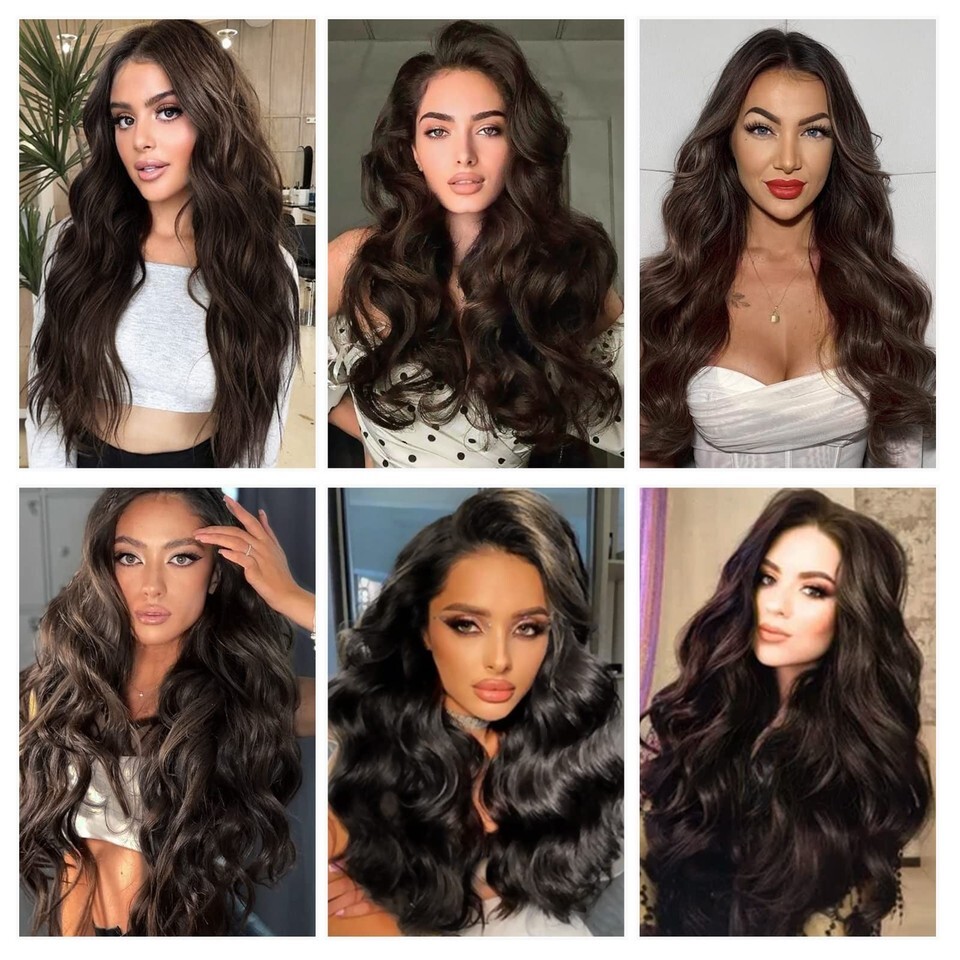 BHF 20in Wavy Clip In Synthetic Hair Extensions Full Head 6pcs Dark Brown