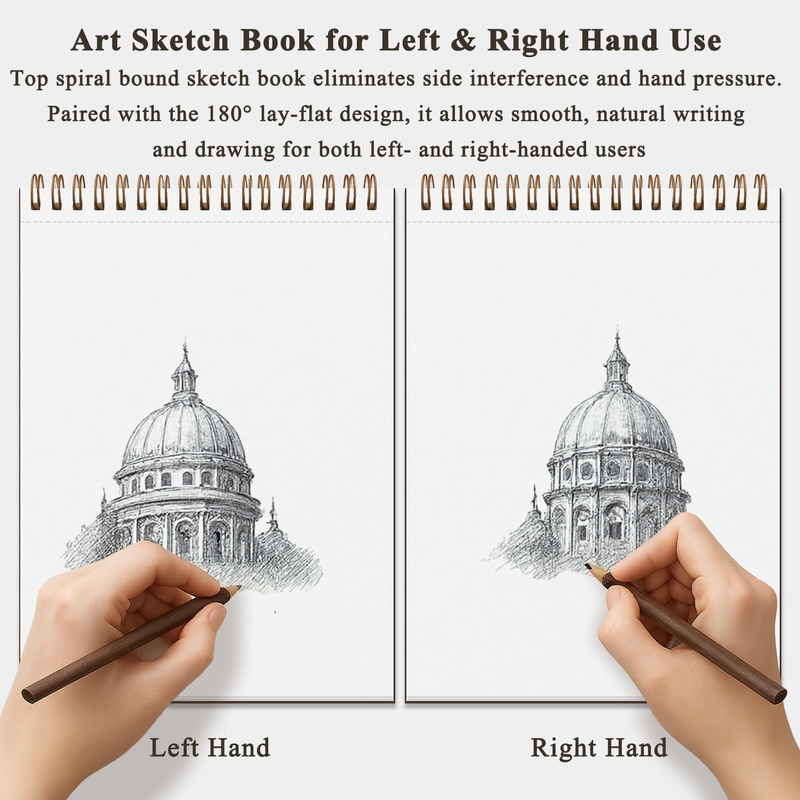 Sketchbook for Drawing, 9"x12" Sketch Book, Top Spiral Sketch Pad, 68lb/100gsm Drawing Paper, Professional Art Supplies for Adults, Teens.
