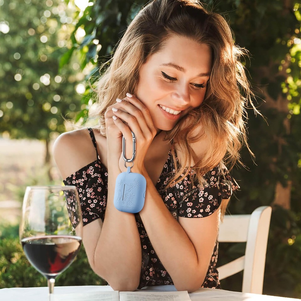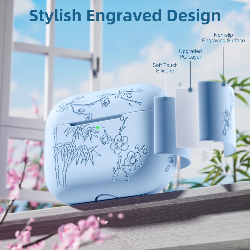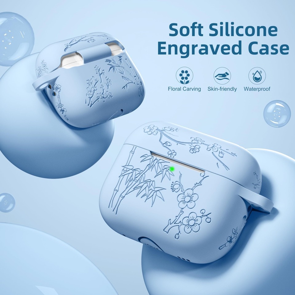 Odbeai AirPods Pro 2nd Gen Case Flower Engraved Soft Silicone Blue Cover