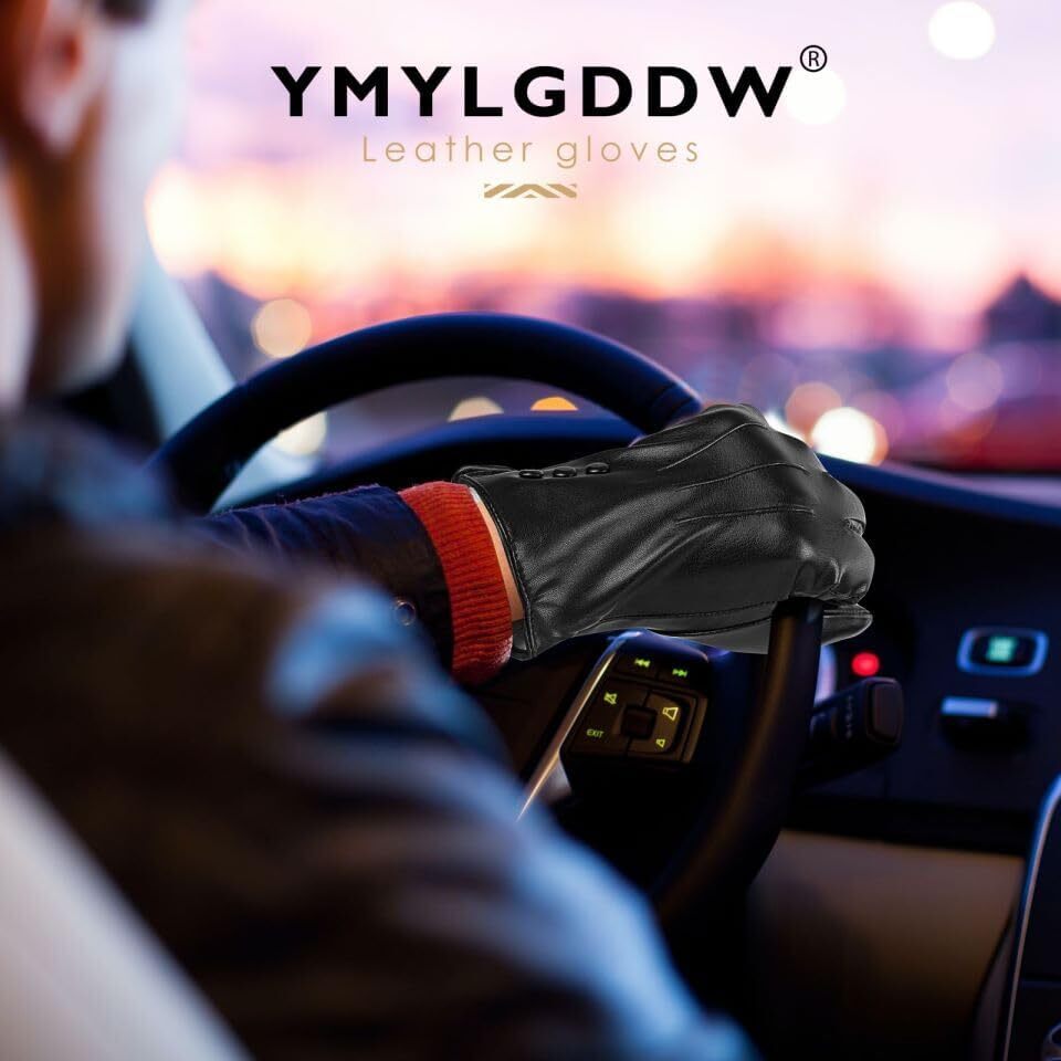 YMYLGDDW Men's Leather Winter Gloves Touch Screen Warm Wool Lining Size L