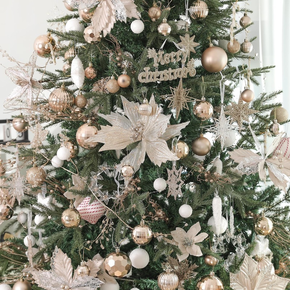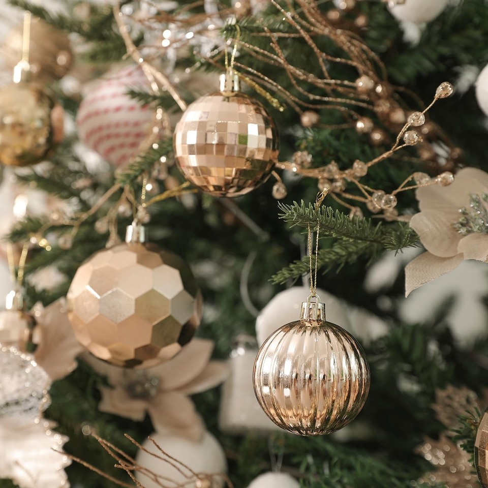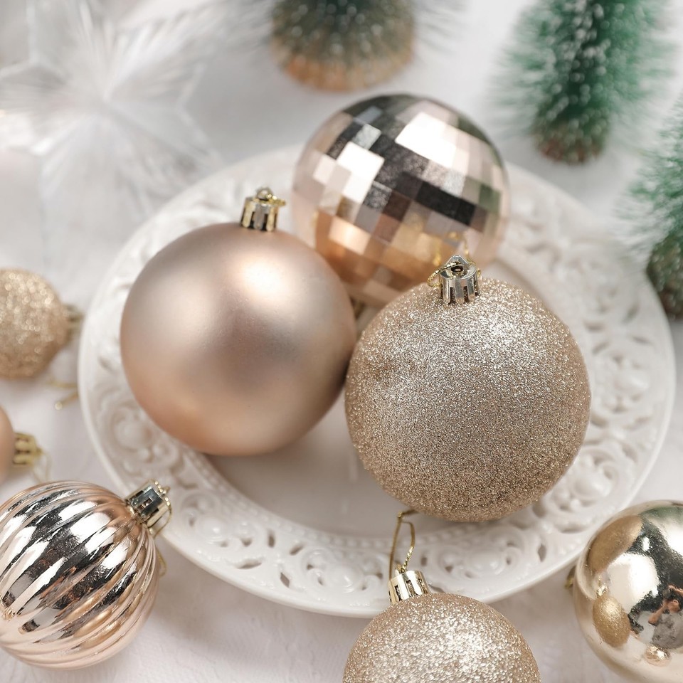 Champagne Christmas Ball Ornaments:These basic 36 combination Christmas balls have solid colors and different unique Christmas element shapes, such as glazed, matte, glitter and faceted. These classic Christmas balls decorations are perfect for decorating your Christmas tree and lighting up your holiday.