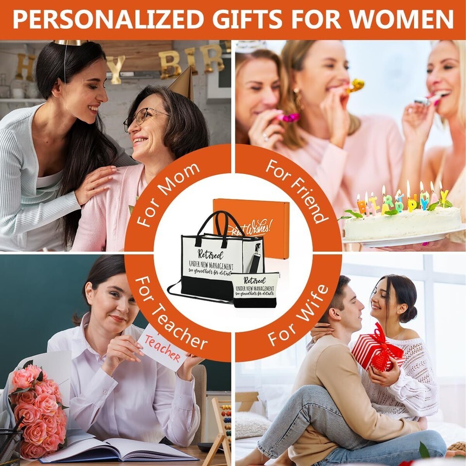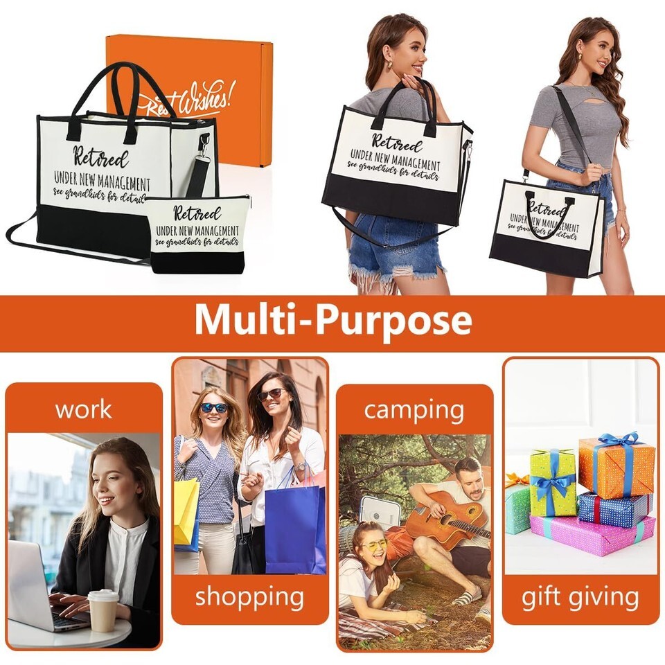 Retirement Gifts Canvas Tote & Makeup Bag Set for Women - 2 Pcs New